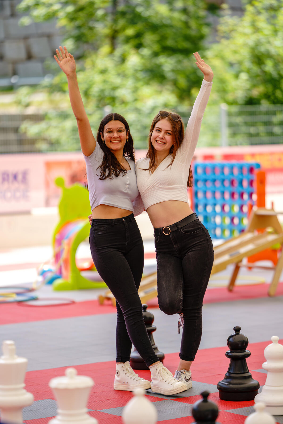 Unsere XXL-Spielewelt verspricht mit Mensch-Ärger-Dich-Nicht, Schach, Dame und Vier-gewinnt eine Menge Abwechslung. Eine kleines Floorballfeld, ein Tischkicker, eine Tischtennisplatte, unsere drei Slacklines und ein Balance- und Hindernisparcours für die Kleinsten runden das Angebot ab.